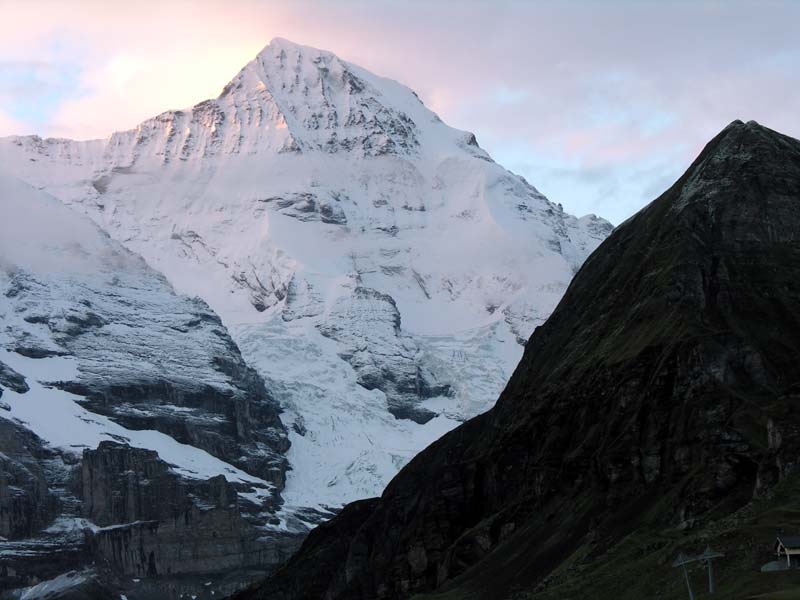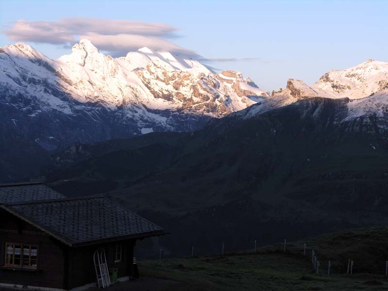 ミューレンでは山が見えず無駄な二日間を過ごし、ベルナー・オーバーラントのメンリッヒェン展望台ホテルに着き、朝5時半に目が覚めた。
