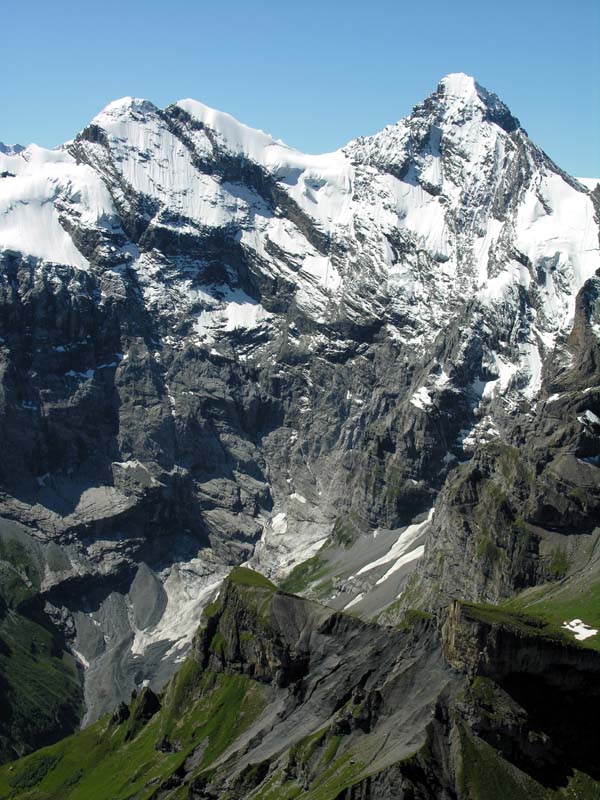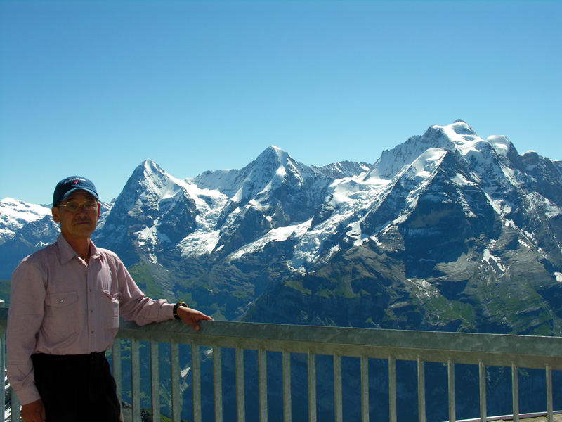 アイガー(3970m)、メンヒ(4099m)、ユングフラウ(4158m)もすっきり見えました。感動と感謝。