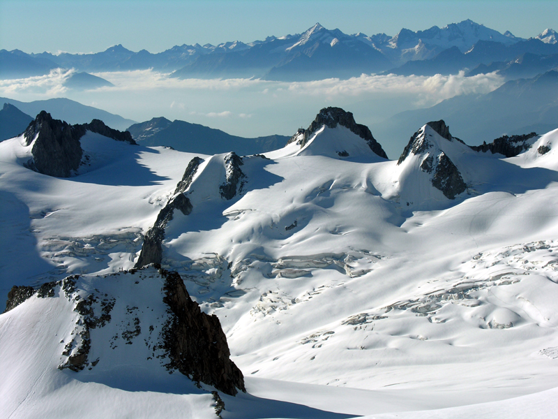 グラシェ・デェ・ジェアン氷河と雲海に浮かぶアルプス