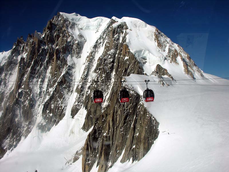 エギーユ・デュ・ミディ展望台からエルブロンネル展望台に行くダンゴ三兄弟みたいなロープウェイ、
