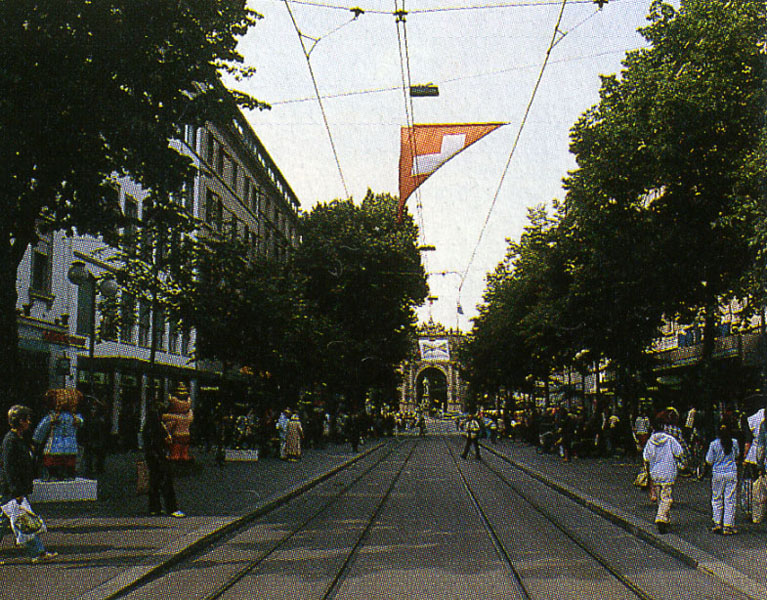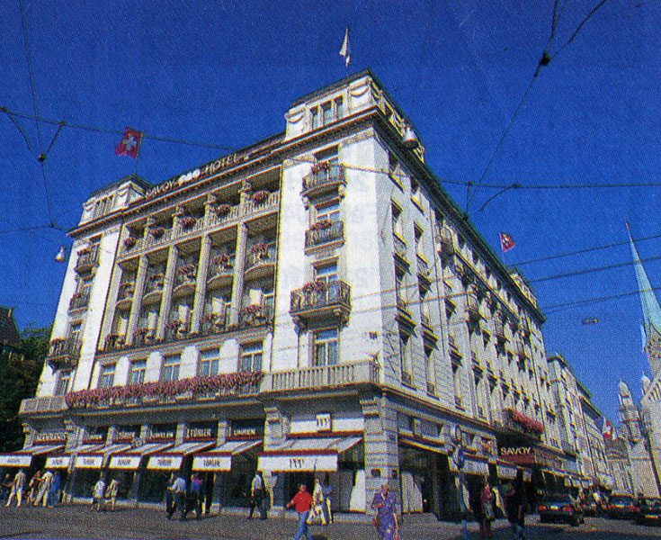| チュリッヒで最も賑わうバーンホフ通リの広場にあるホテル | お土産を買ったチョコレート屋 |