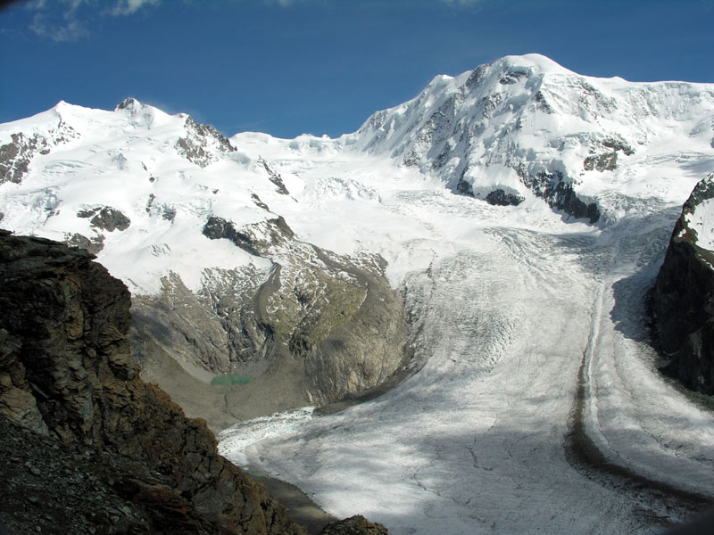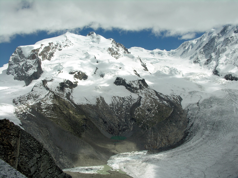 モンテ・ローザ(4634m) グレンツ氷河 リスカム(4527m)