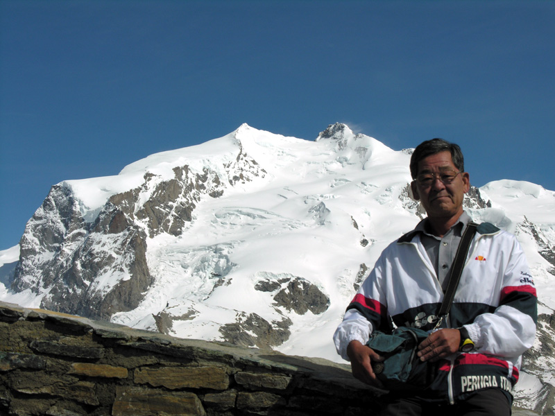 白銀のモンテ・ローザ(4634m)を背景にご満悦。