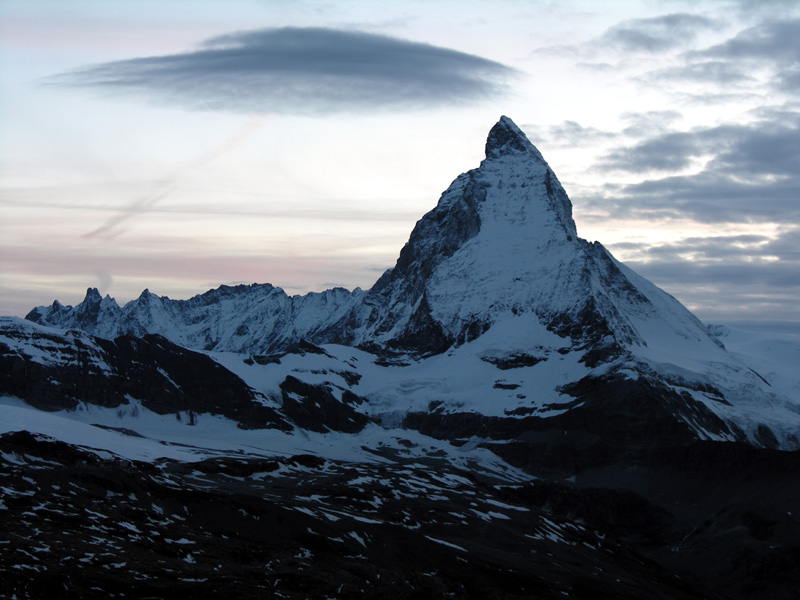 傘雲を頂くマッターホルン