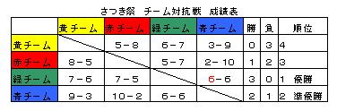 2回戦緑組と青組の対戦は、6−6で同率のためジャンケンで勝敗を決定した。