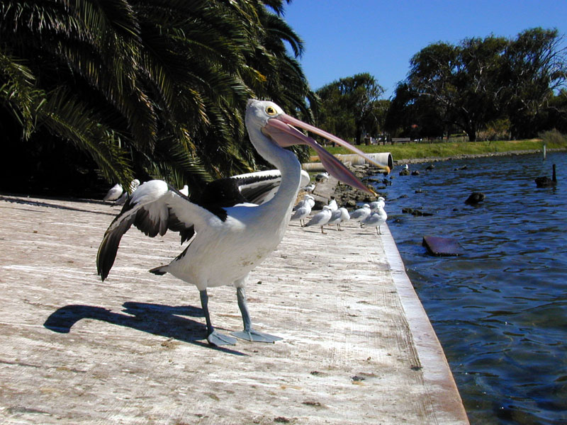 ペリカンも真近で見られる。昼寝中のペリカンをちょっと突ついていたずらをした。