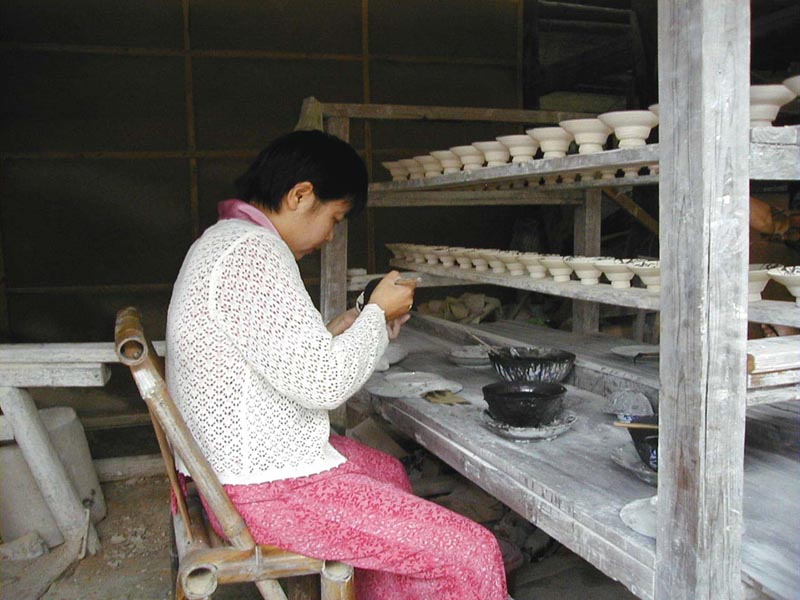 古窯瓷廠(こようじしょう)で、作業工程を見学。