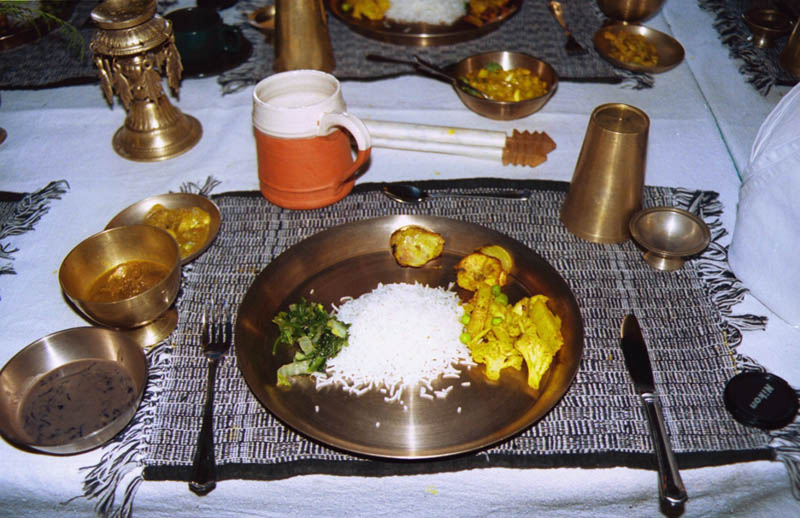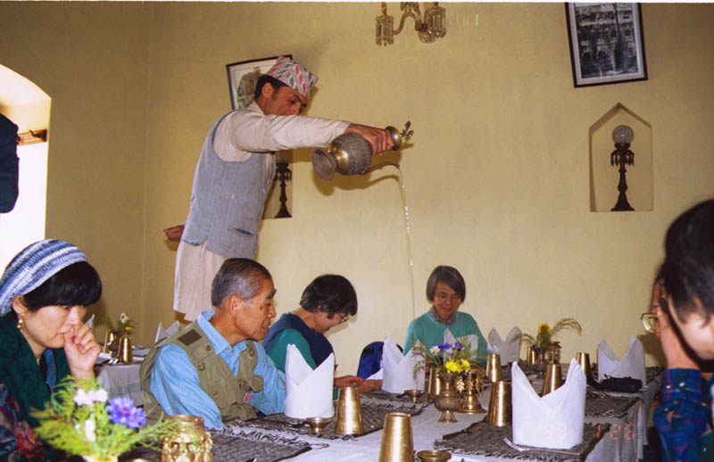 現地案内人がネパール式に手を使っての食べ方を披露してくれる。