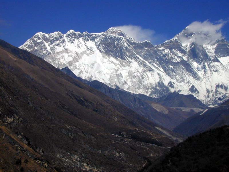 とても眺めの良い所でエベレスト(8848m)・ロッツエ(8516m)・ヌプツエ(7879m)が目に前に見えます。
