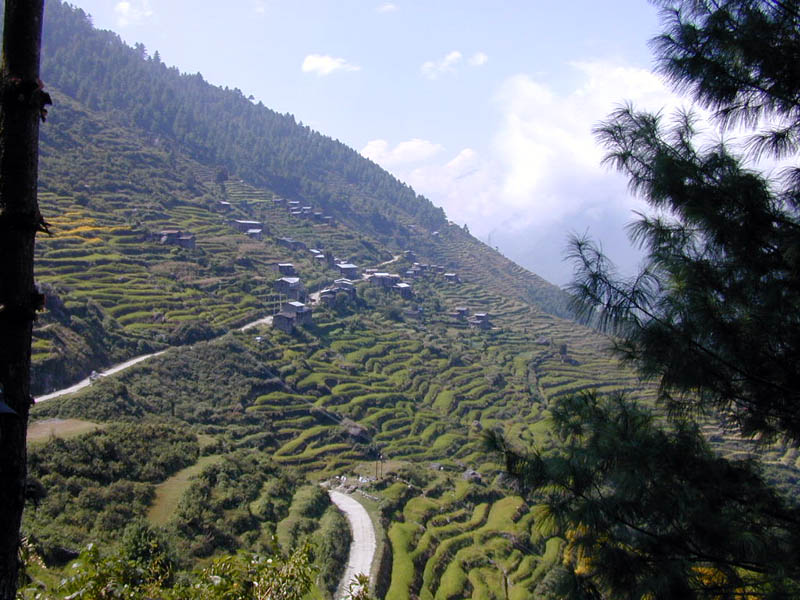 バルグーで早めの昼食をとり、集落を抜けると車道を離れ右手の山腹に入り、本格的な登りです。