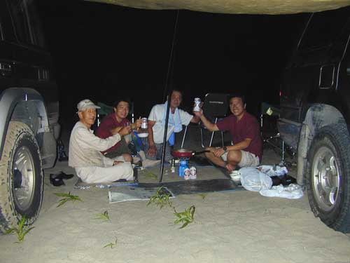 早速ビールで釣果を願って乾杯。深夜2時まで焼き肉パーティー。
