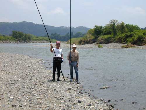 テニスの仲間と父とで久慈川へ「あゆ」釣りに行きました。