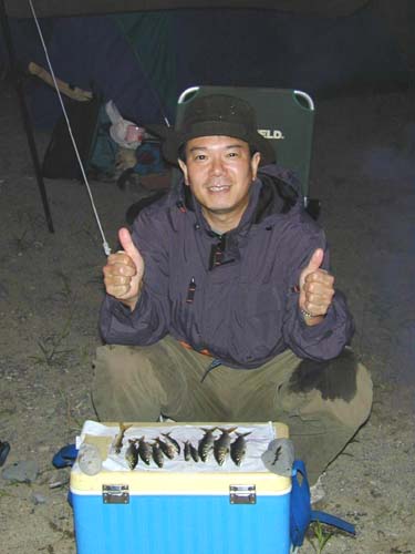 テントの設営して、早速釣りに。