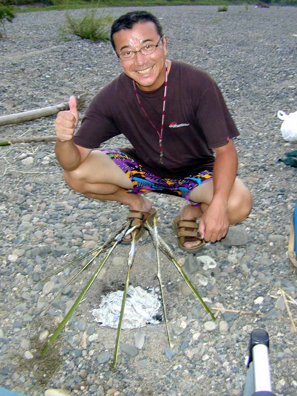 日帰り組が帰った後、例年どうり鮎の塩焼きとバーベキュウとお酒で楽しみました。